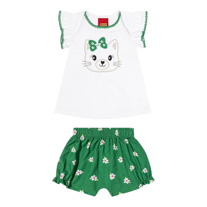 Conjunto Feminino Bebê Kyly 1000664 Material: MEIA MALHA Manga: MANGA CURTA Abertura: FECHADA Bordado com Ponto Cheio