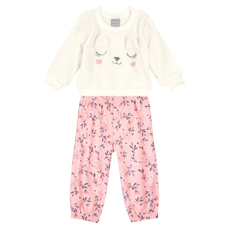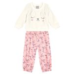 Conjunto Feminino Bebê Mundi 55324 Material: PELO/ SOFT Manga: MANGA LONGA COM PUNHO Barra: BARRA COM PUNHO Abertura: FECHADA Aplique Interativo/ Bordado