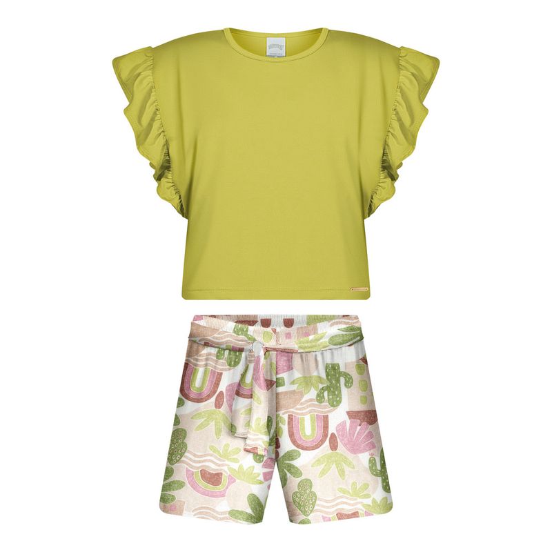 Conjunto Feminino Infantil Alakazoo 0025 Material: MALHA MODELLI E RAYON NEW SLUB Manga: MANGA CURTA Abertura: FECHADA