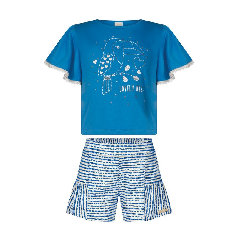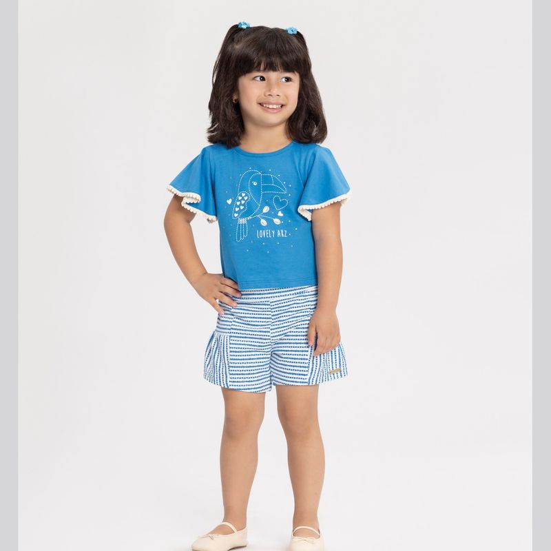 Conjunto Feminino Infantil Alakazoo 0082 Material: MEIA MALHA PENTEADA E MALHA NIKKO Manga: MANGA CURTA Abertura: FECHADA Aplique de Pompom e Strass