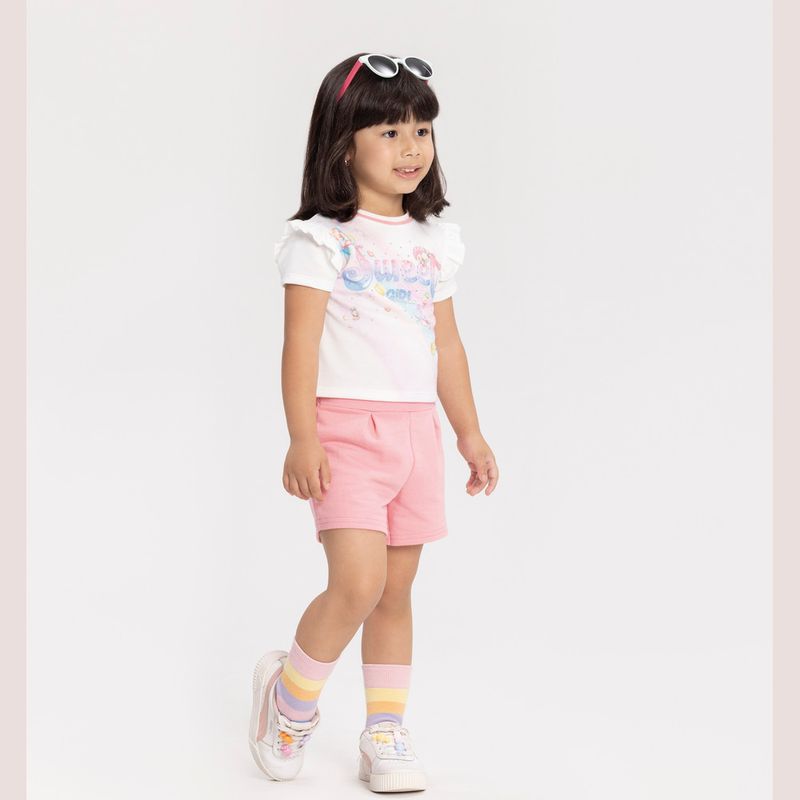Conjunto Feminino Infantil Alakazoo 0091 Material: MOLETINHO SOFT E MOLETOM Manga: MANGA CURTA Abertura: FECHADA Aplique Strass