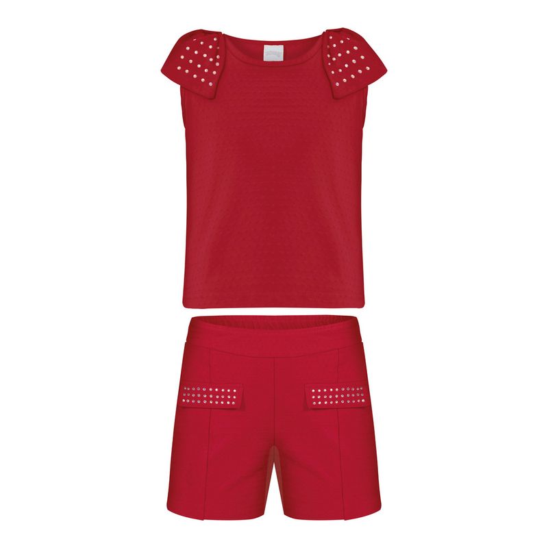 Conjunto Feminino Infantil Alakazoo 0104 Material: MALHA NIKKO Manga: MANGA CURTA Abertura: FECHADA Aplique Strass
