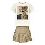 Conjunto Feminino Infantil Alakazoo 0105 Material: MEIA MALHA PENTEADA E MALHA FLORENCE Manga: MANGA CURTA Abertura: FECHADA Strass Shorts Saia