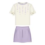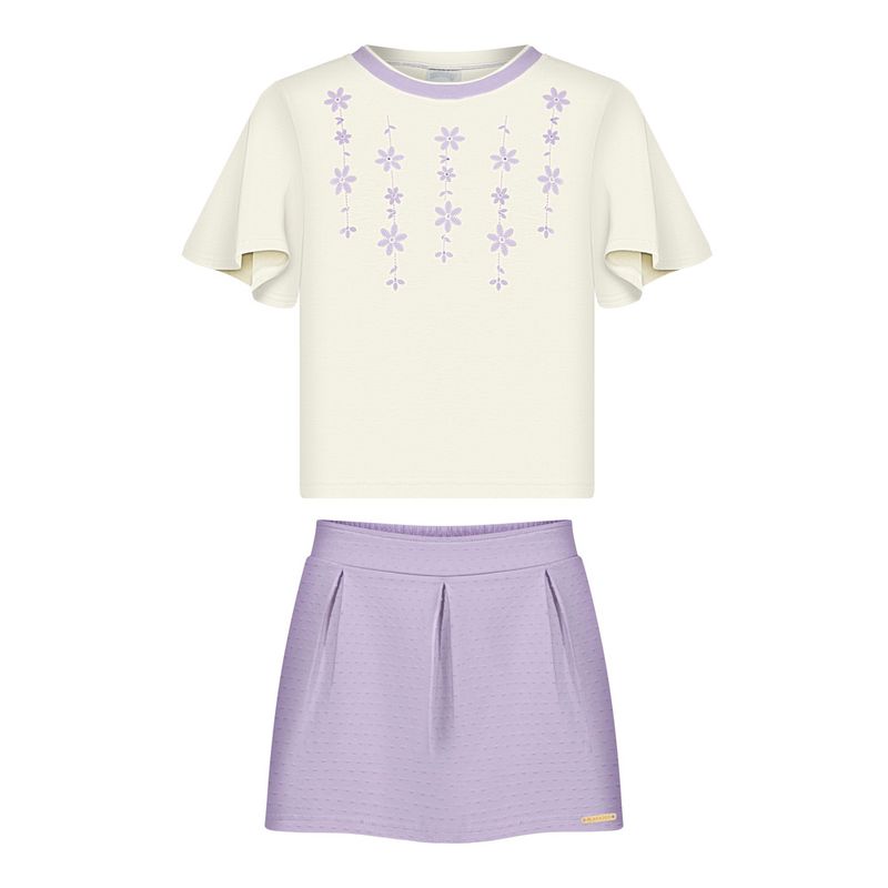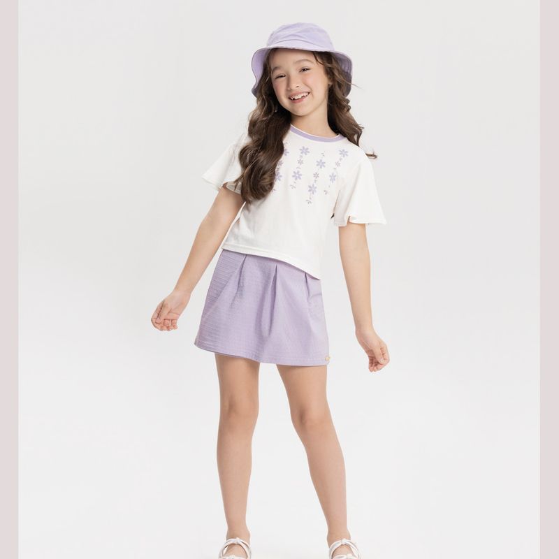 Conjunto Feminino Infantil Alakazoo 0106 Material: MEIA MALHA PENTEADA E MALHA NIKKO Manga: MANGA CURTA Abertura: FECHADA Aplique Strass Shorts Saia