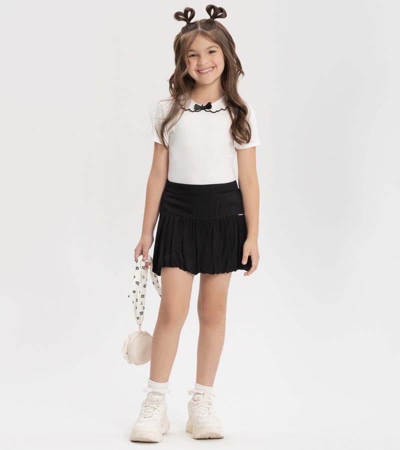 Conjunto Feminino Infantil Alakazoo 0253 Material: MALHA CANELADO SEVILHA E RAYON Manga: MANGA CURTA Abertura: FECHADA Bordado na Gola Shorts Embutido Saia Balonê