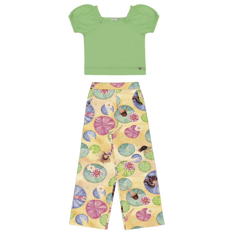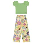 Conjunto Feminino Infantil Alakazoo 39467 Material: MALHA VISCO LADY E MEIA MALHA PENTEADA Manga: MANGA CURTA Barra: WIDE LEG Abertura: FECHADA