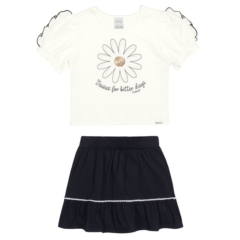 Conjunto Feminino Infantil Alakazoo 39475 Material: MEIA MALHA PENTEADA Manga: MANGA CURTA Abertura: FECHADA Bordado na Blusa Shorts Embutido
