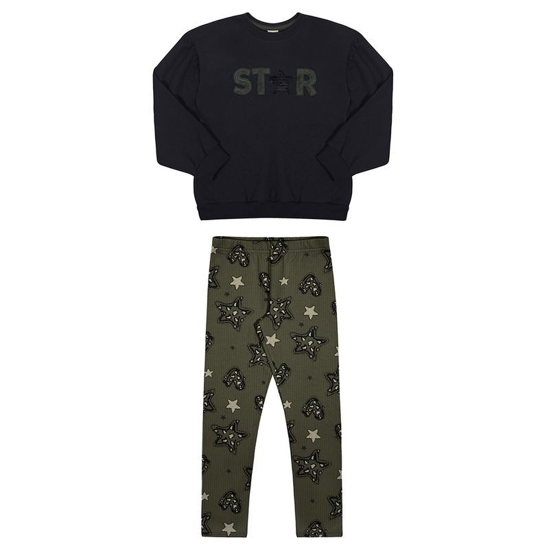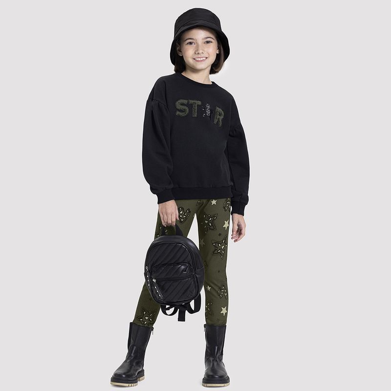 Conjunto Feminino Infantil Alakazoo 67885 Material: MOLETINHO SOFT Manga: MANGA LONGA COM PUNHO Barra: FLARE Abertura: FECHADA Bordado com Lantejoula Dupla Face