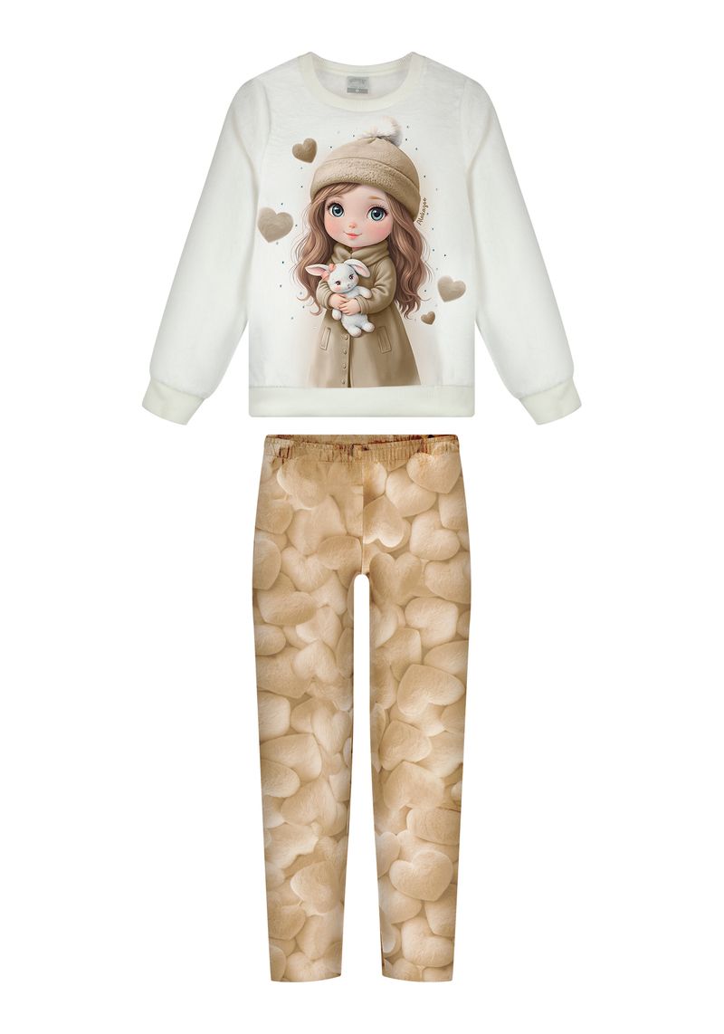 Conjunto Feminino Infantil Alakazoo A8155 Material: PELO FLUFFLY E MOLETINHO SOFT Manga: MANGA LONGA COM PUNHO Barra: BARRA TRADICIONAL Abertura: FECHADA Strass