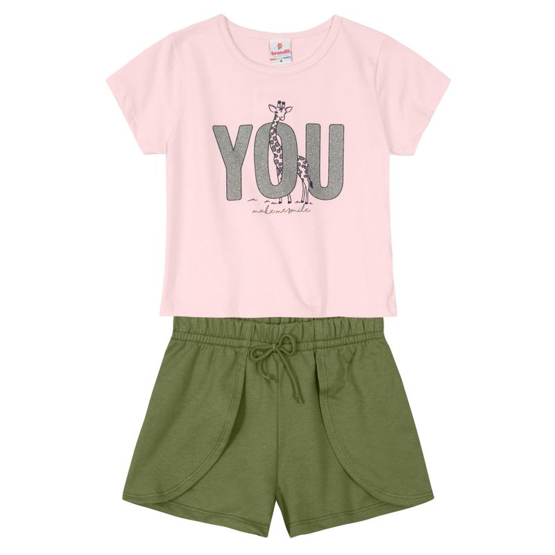 Conjunto Feminino Infantil Brandili 26335 Material: MEIA MALHA E MOLETINHO Manga: MANGA CURTA Abertura: FECHADA Estampa com Glitter
