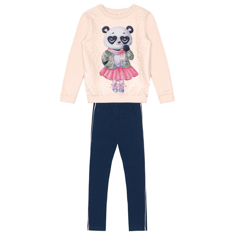 Conjunto Feminino Infantil Brandili 54859 Material: MOLETOM E MATELASSÊ Manga: MANGA LONGA COM PUNHO Barra: BARRA TRADICIONAL Abertura: FECHADA ALPIQUE STRASS