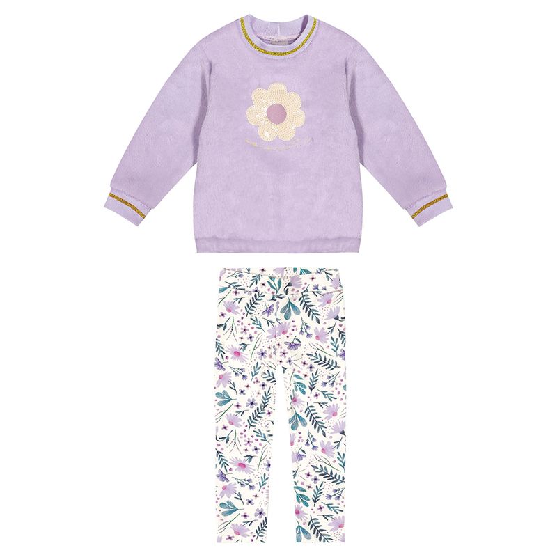 Conjunto Feminino Infantil Coloritta 73123 Material: PELO/ MOLECOTTON Manga: MANGA LONGA COM PUNHO Barra: BARRA TRADICIONAL Abertura: FECHADA Bordado c/ Lantejoula