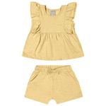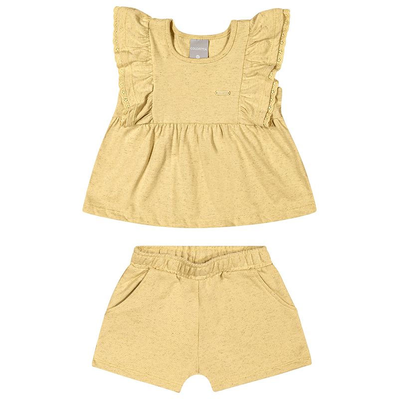 Conjunto Feminino Infantil Coloritta 73200 Material: MALHA ECO LINHO E MOLETOM ECO LINHO Manga: MANGA CURTA Abertura: FECHADA Aplique Renda