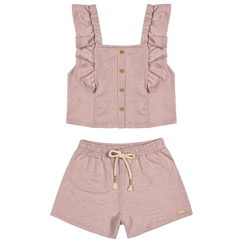Conjunto Feminino Infantil Coloritta 75181 Material: MOLETOM ECO LINHO Manga: ALCA Abertura: FECHADA Cadarço com Lurex