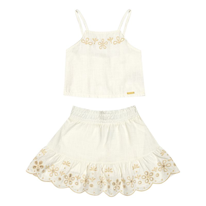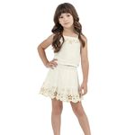 Conjunto Feminino Infantil Coloritta 75219 Material: VISCOLINHO E MEIA MALHA PENTEADA Manga: ALCA Abertura: FECHADA Bordado Vazado