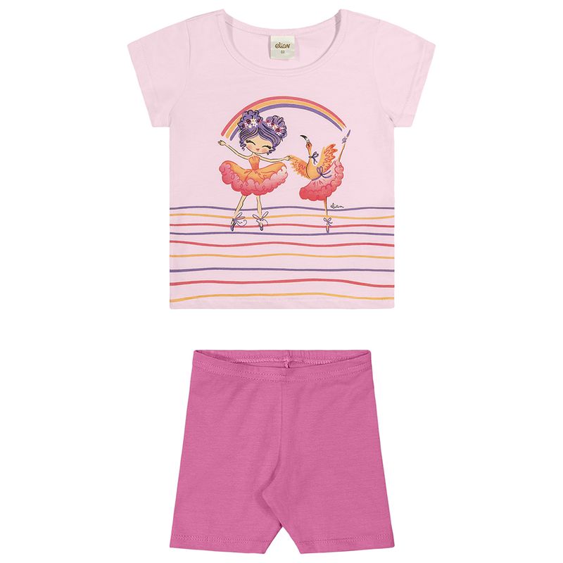 Conjunto Feminino Infantil Elian 231969 Material: MEIA MALHA PENTEADA E COTTON LEVE Manga: MANGA CURTA Abertura: FECHADA
