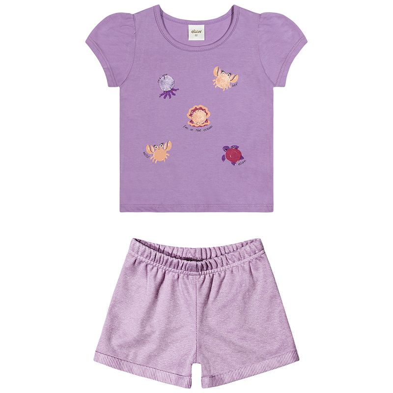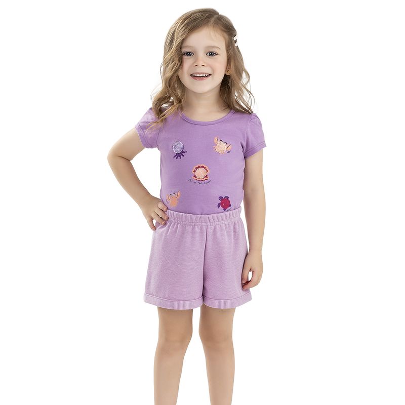 Conjunto Feminino Infantil Elian 232012 Material: MEIA MALHA E MOLETOM DUBLADO Manga: MANGA CURTA Abertura: FECHADA Bordado com Aplique
