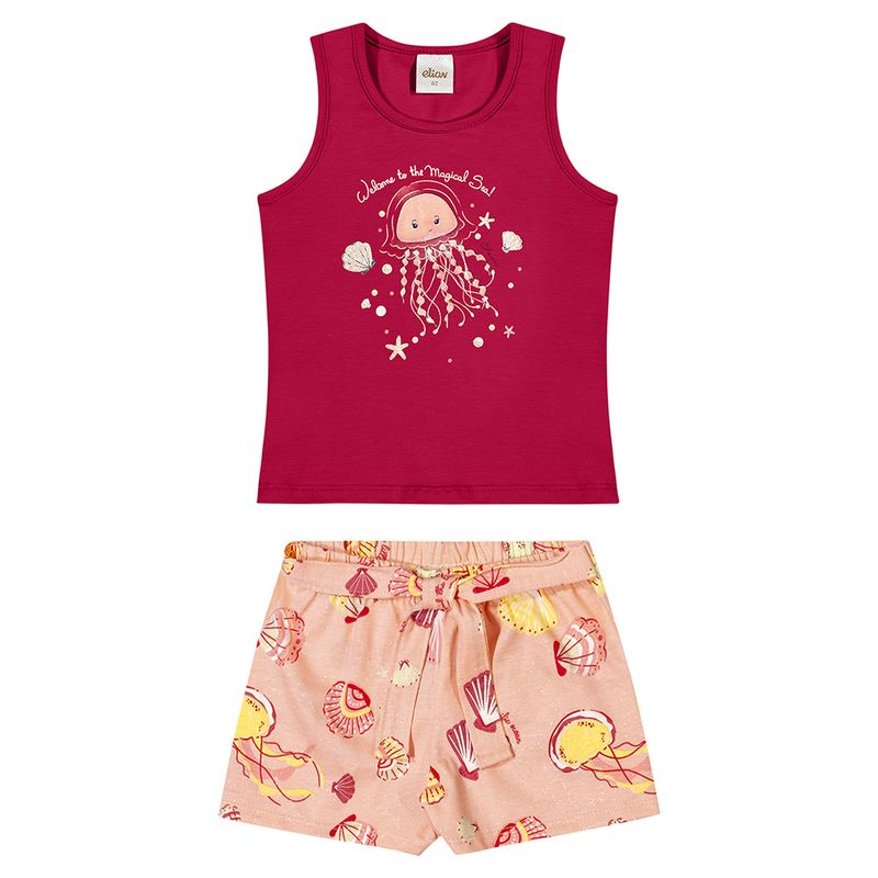 Conjunto Feminino Infantil Elian 232026 Material: COTTON LEVE E MEIA MALHA Manga: REGATA Abertura: FECHADA Estampa com Glitter