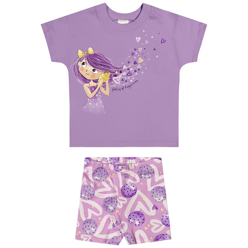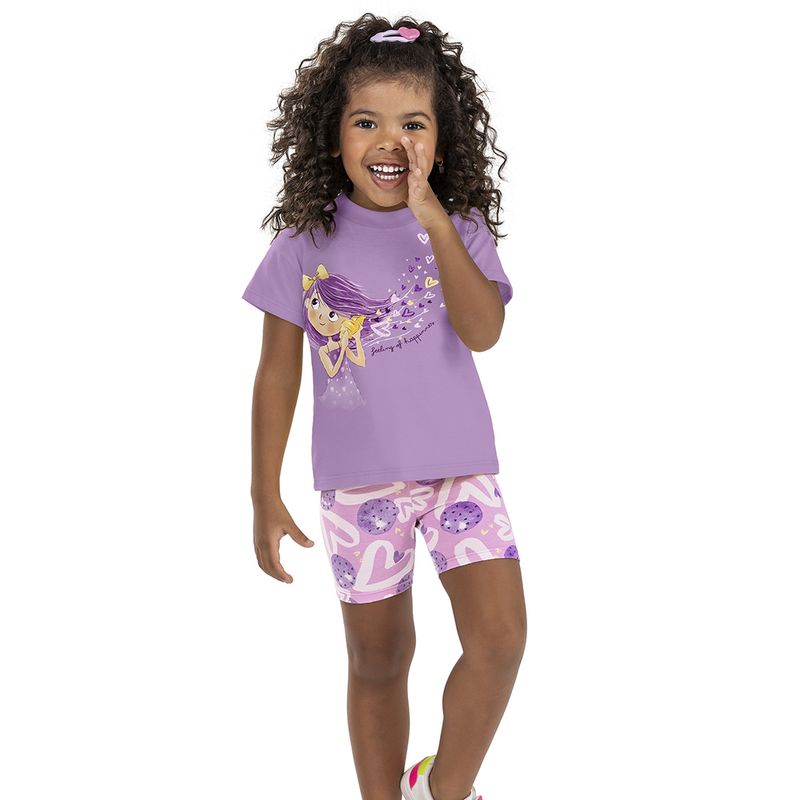 Conjunto Feminino Infantil Elian 232027 Material: MEIA MALHA E COTTON LEVE Manga: MANGA CURTA Abertura: FECHADA Estampa com Glitter