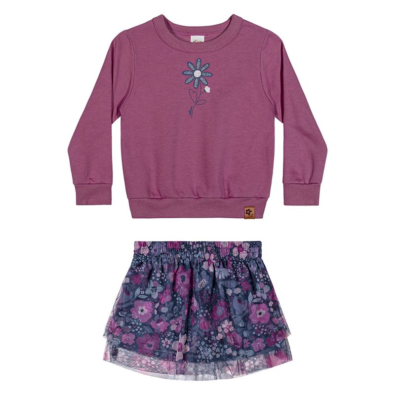 Conjunto Feminino Infantil Elian 232140 Material: MOLETOM FELPADO, TULE E MEIA MALHA Manga: MANGA LONGA COM PUNHO Abertura: FECHADA Shorts Interno Estampa Puff com Imita Foil