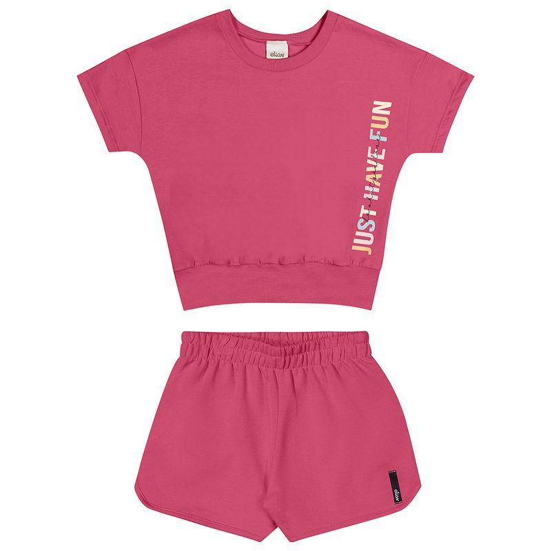 Conjunto Feminino Infantil Elian 251769 Material: MEIA MALHA PENTEADA E MOLETOM SEM FELPA Manga: MANGA CURTA Abertura: FECHADA Estampa com Glitter
