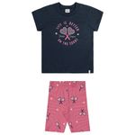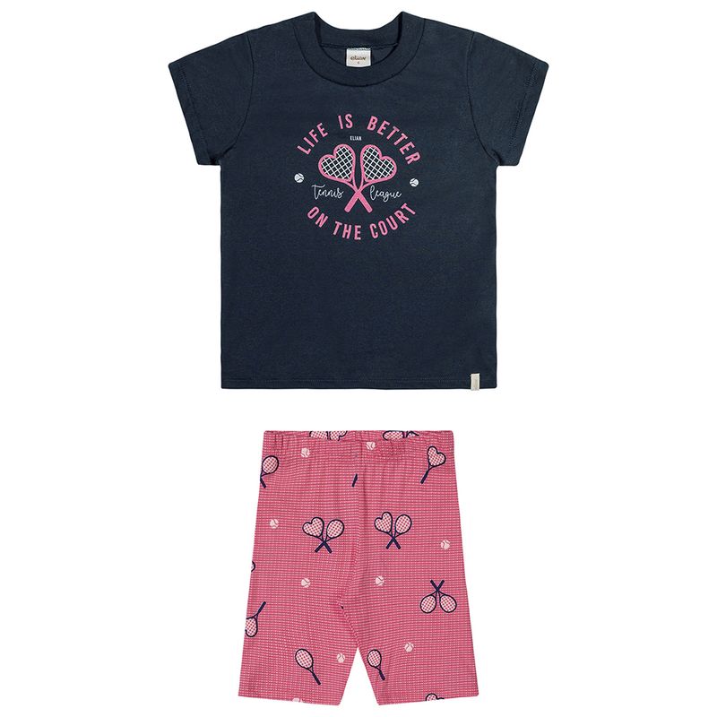 Conjunto Feminino Infantil Elian 251782 Material: MEIA MALHA PENTEADA E COTTON LEVE Manga: MANGA CURTA Abertura: FECHADA Estampa Puff com Glitter