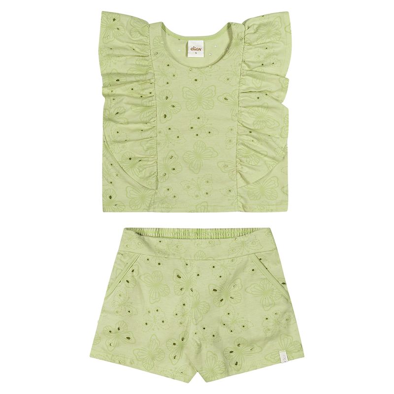 Conjunto Feminino Infantil Elian 251812 Material: MEIA MALHA DEVORÊ Manga: MANGA CURTA Abertura: FECHADA Forrado