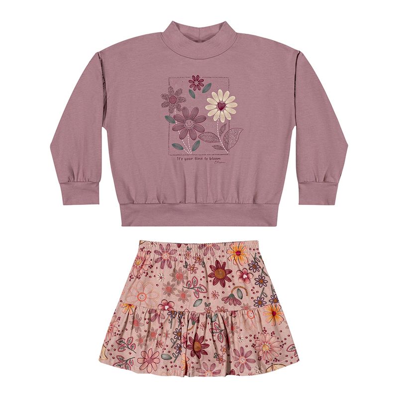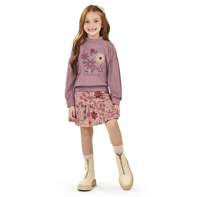 Conjunto Feminino Infantil Elian 251851 Material: COTTON LEVE E MEIA MALHA Manga: MANGA LONGA COM PUNHO Abertura: FECHADA Shorts Interno Estampa com Strass
