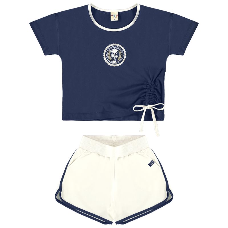 Conjunto Feminino Infantil Have Fun 28909 Material: MEIA MALHA E MOLETINHO Manga: MANGA CURTA Abertura: FECHADA
