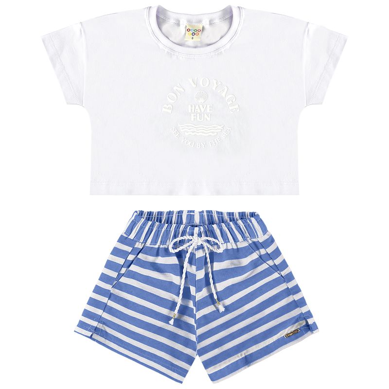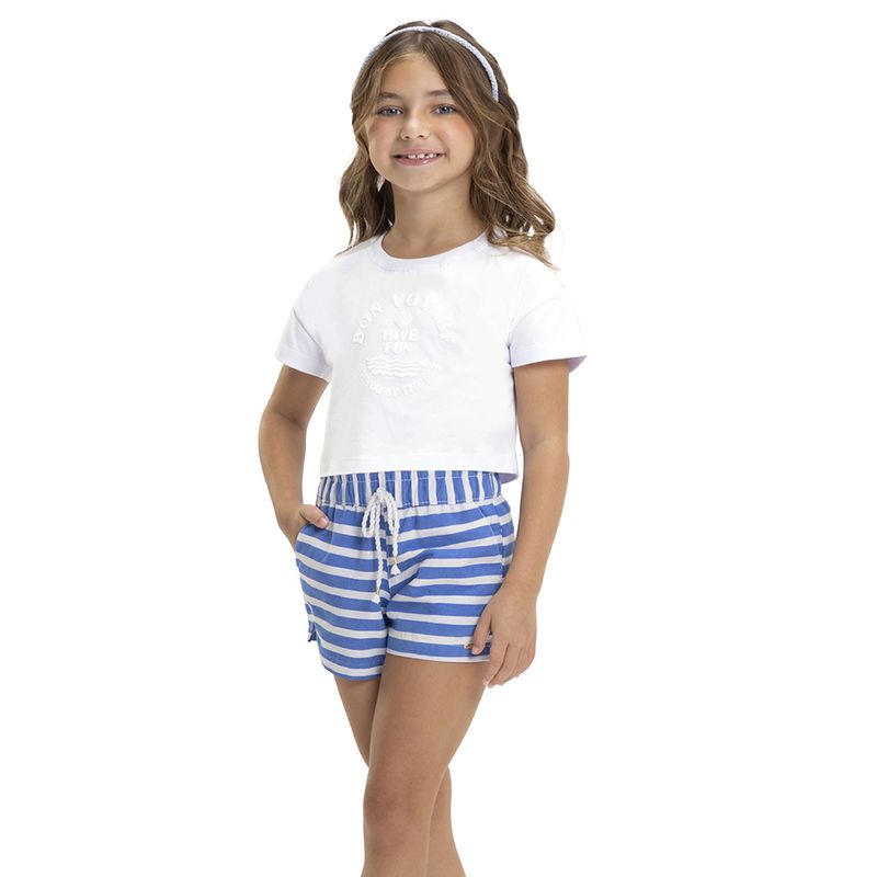 Conjunto Feminino Infantil Have Fun 28910 Material: MEIA MALHA E TECIDO LISTRADO ECO Manga: MANGA CURTA Abertura: FECHADA