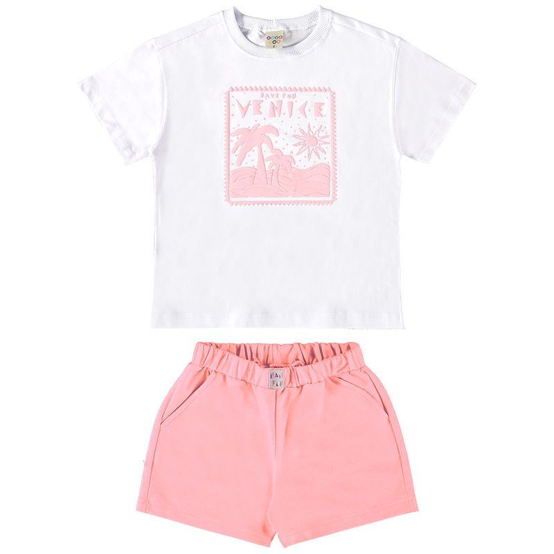 Conjunto Feminino Infantil Have Fun 28936 Material: MEIA MALHA E MOLETINHO Manga: MANGA CURTA Abertura: FECHADA