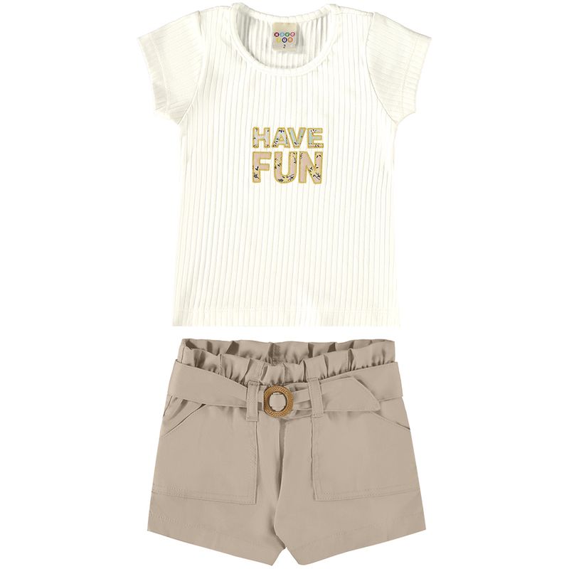 Conjunto Feminino Infantil Have Fun 28941 Material: MALHA CANELADA E SARJA TINTA COMFORT Manga: MANGA CURTA Abertura: FECHADA