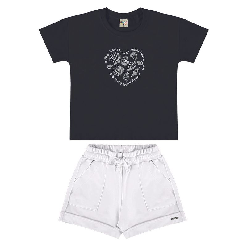 Conjunto Feminino Infantil Have Fun 29134 Material: MEIA MALHA E MOLECOTTON Manga: MANGA CURTA Abertura: FECHADA