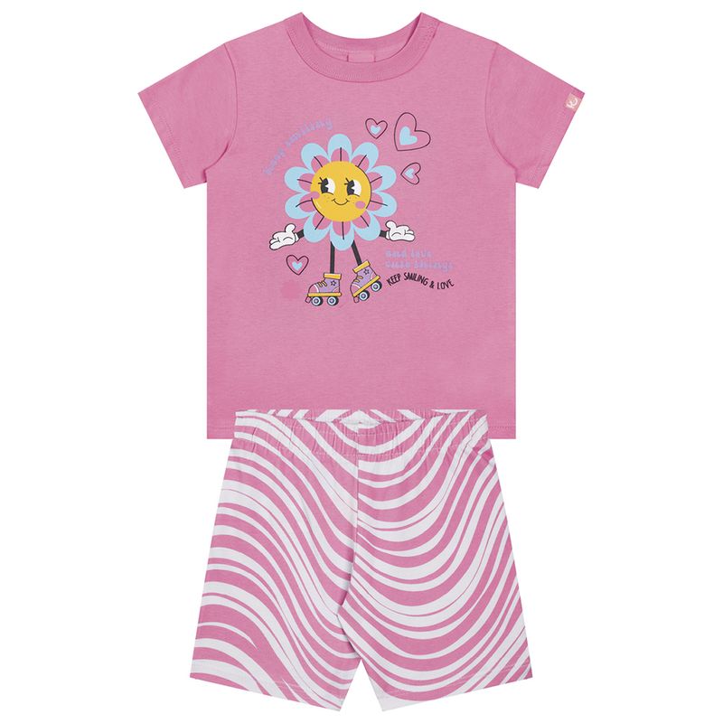 Conjunto Feminino Infantil Kamylus 53696 Material: MEIA MALHA PENTEADA E COTTON Manga: MANGA CURTA Abertura: FECHADA