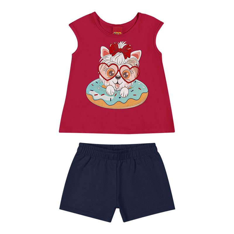 Conjunto Feminino Infantil Kyly 1000513 Material: MEIA MALHA E MOLETINHO Manga: REGATA Abertura: FECHADA
