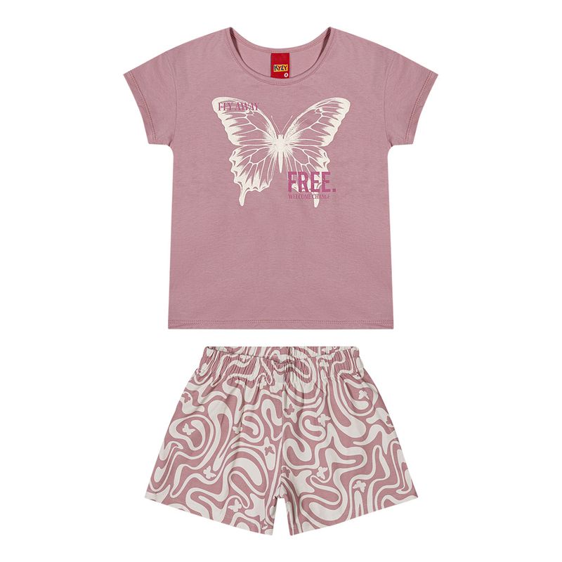 Conjunto Feminino Infantil Kyly 1000565 Material: MEIA MALHA E COTTON Manga: MANGA CURTA Abertura: FECHADA