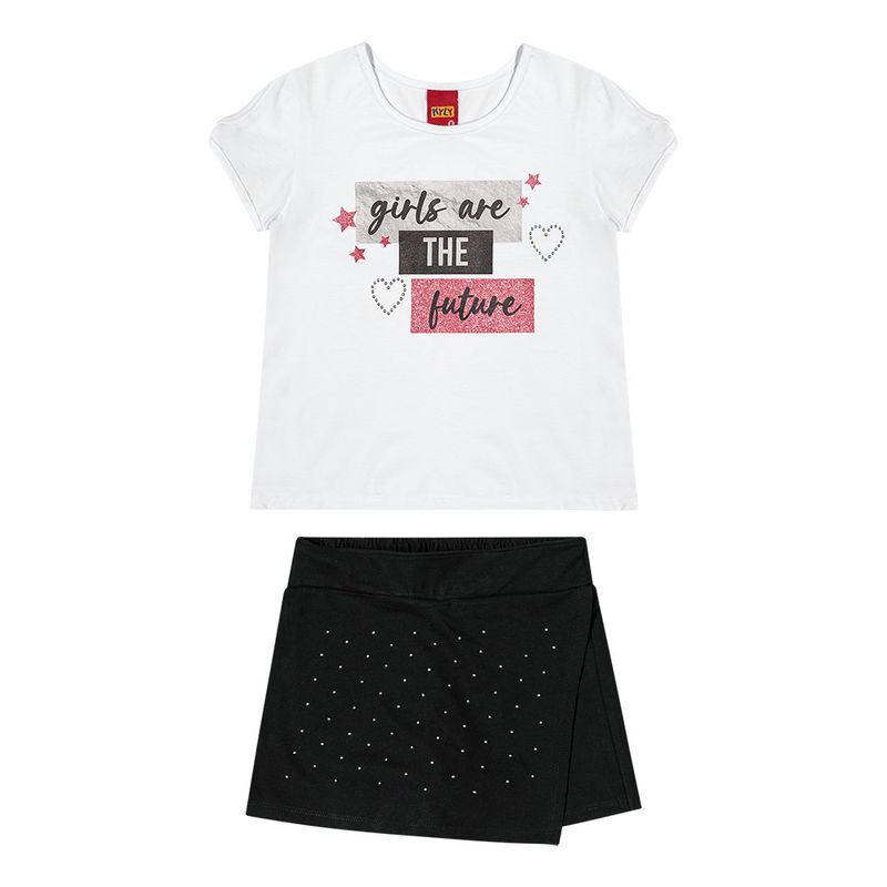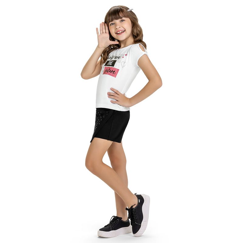 Conjunto Feminino Infantil Kyly 1000571 Material: MEIA MALHA E MOLECOTTON SARJADO Manga: MANGA CURTA Abertura: FECHADA Aplicação de Strass
