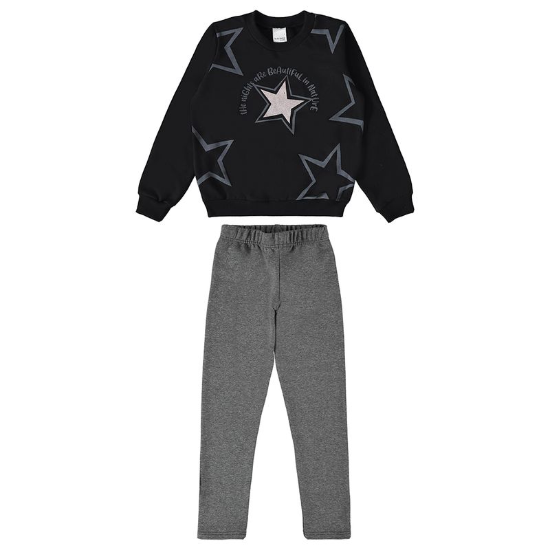 Conjunto Feminino Infantil Malwee 116716 Material: MOLETOM FLANELADO E MOLETOM FLANELADO STRETCH Manga: MANGA LONGA COM PUNHO Barra: BARRA TRADICIONAL Abertura: FECHADA Estampa + Glitter