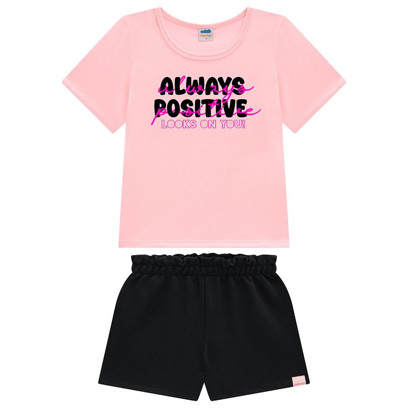 Conjunto Feminino Infantil Marlan 64867 Material: MEIA MALHA PENTEADA E MOLETINHO Manga: MANGA CURTA Abertura: FECHADA Estampa com Aplique Strass