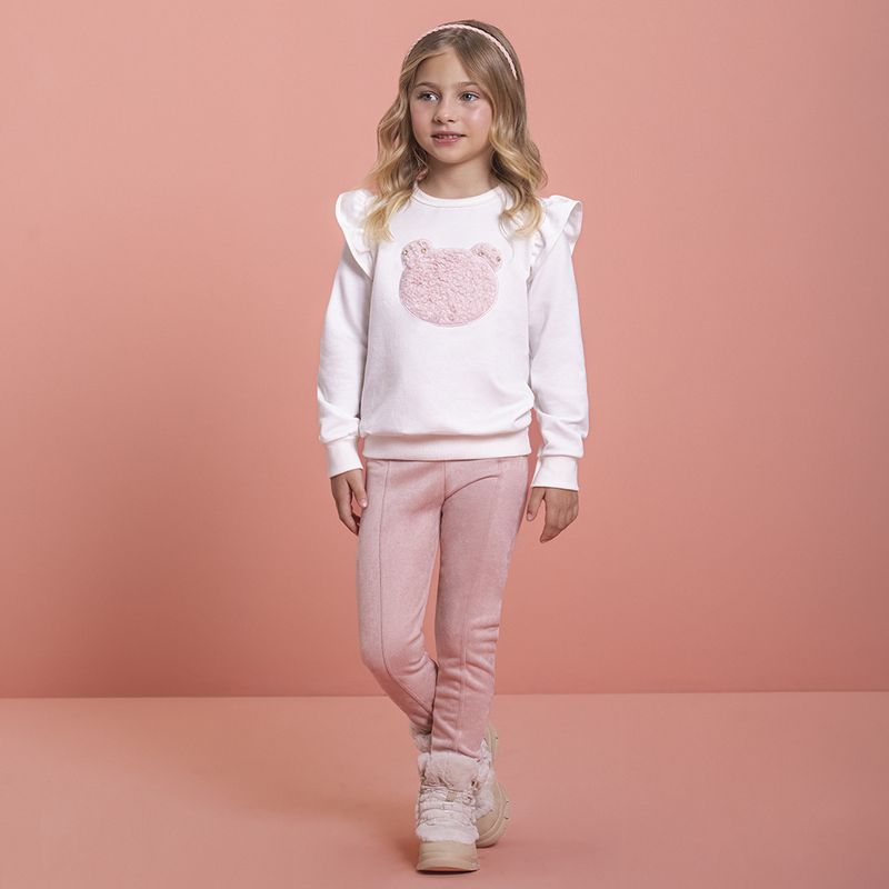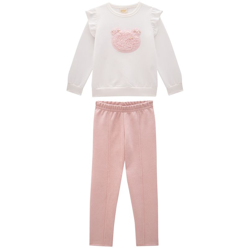 Conjunto Feminino Infantil Milli e Nina 27262 Material: MOLECOTTON FELPADO E SUEDE Manga: MANGA LONGA COM PUNHO Barra: BARRA TRADICIONAL Abertura: FECHADA Bordado com Aplique de Pérola