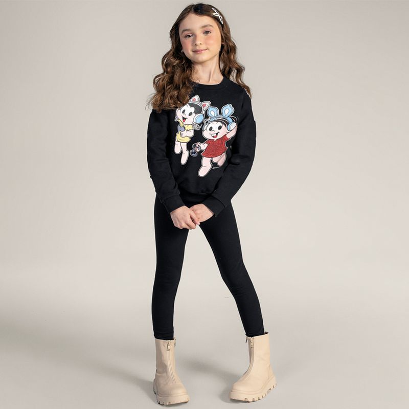 Conjunto Feminino Infantil Mônica Brandili 55080 Material: MOLETOM Manga: MANGA LONGA COM PUNHO Barra: BARRA TRADICIONAL Abertura: FECHADA