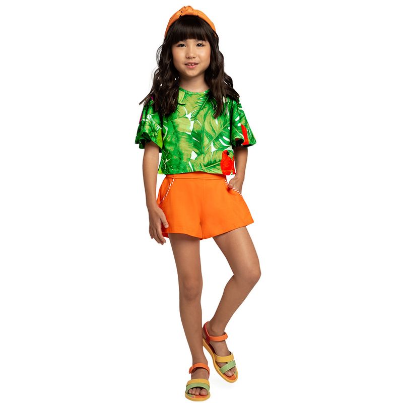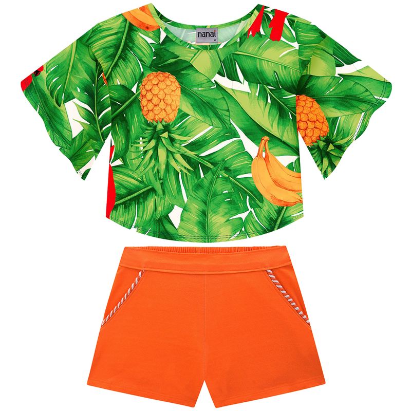Conjunto Feminino Infantil Nanai 6000102 Material: MEIA MALHA E MALHA TRABALHADA Manga: MANGA CURTA Abertura: FECHADA