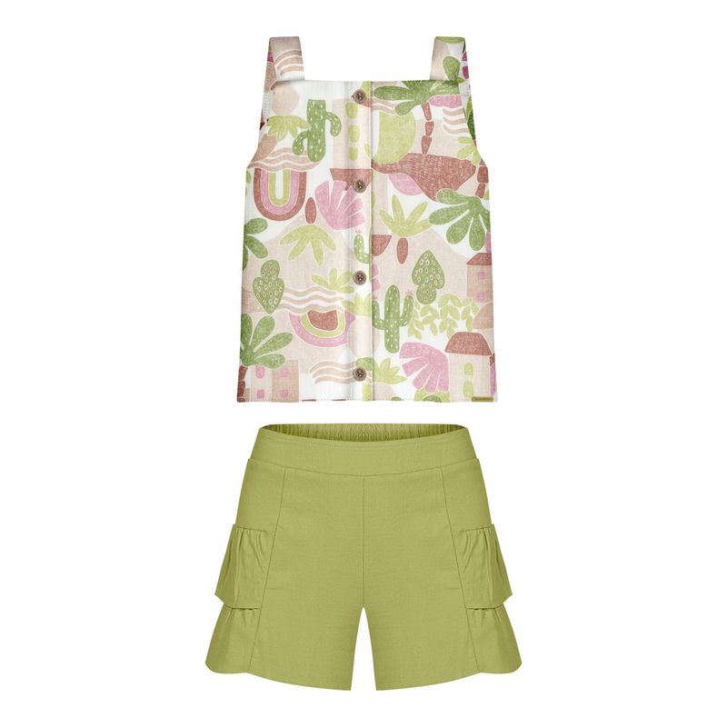 Conjunto Feminino Juvenil Alakazoo 0075 Material: TECIDO RAYON NEW SLUB E TECIDO LINEN ELEGANCE Manga: ALÇA Abertura: FECHADA