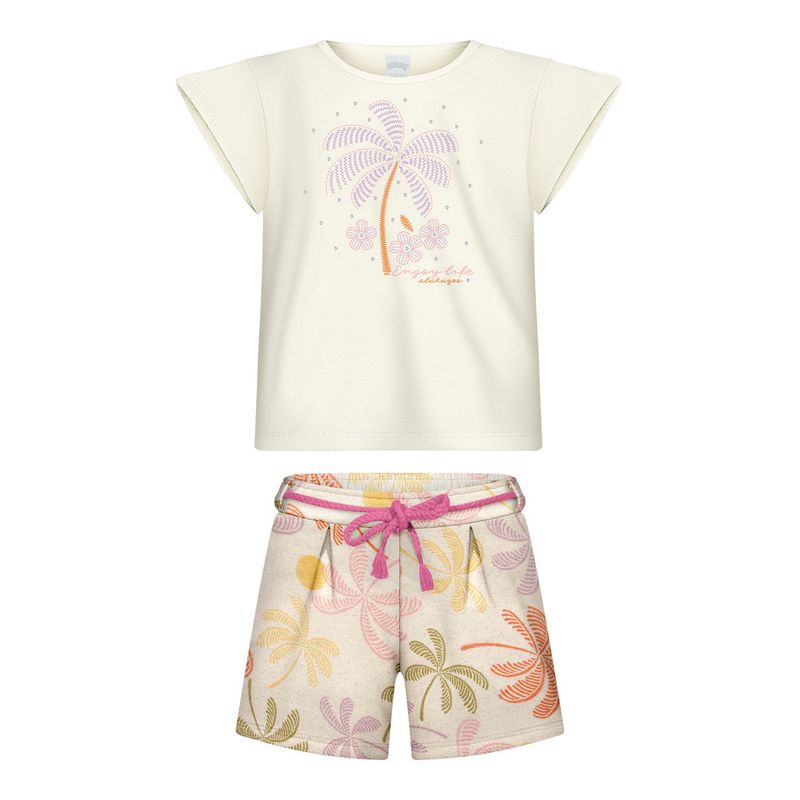 Conjunto Feminino Juvenil Alakazoo 0077 Material: MEIA MALHA PENTEDA E MOLETOM LINEN Manga: MANGA CURTA Abertura: FECHADA Aplique Strass