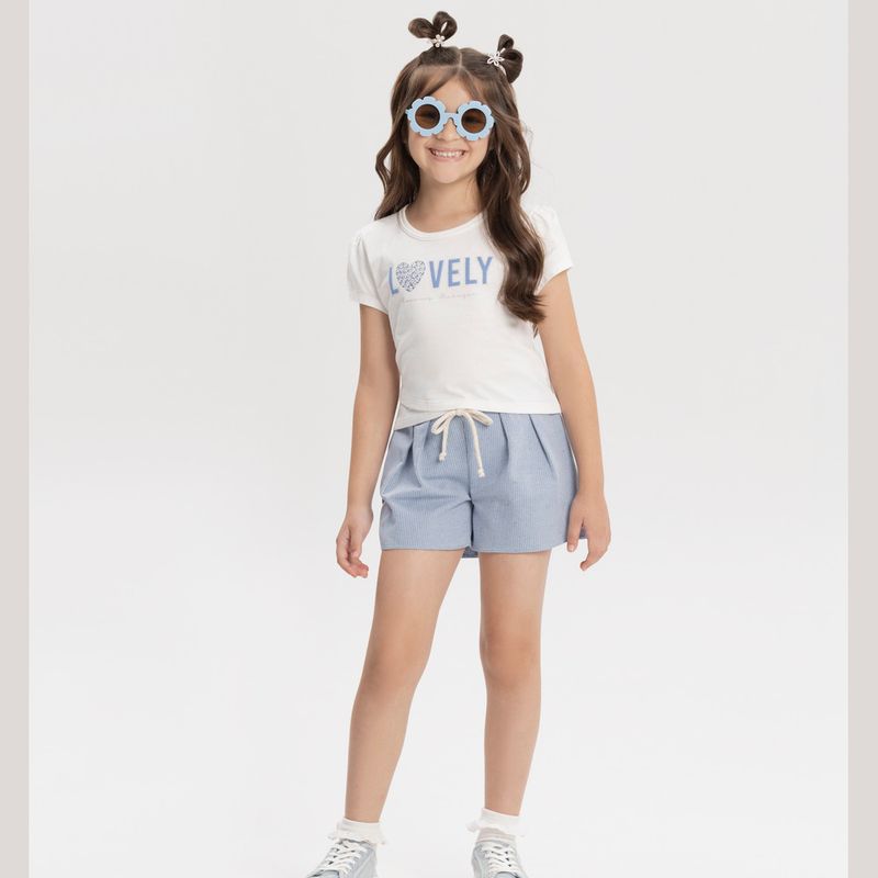 Conjunto Feminino Juvenil Alakazoo 0079 Material: MEIA MALHA PENTEADA E TECIDO ECOTEX Manga: MANGA CURTA Abertura: FECHADA Aplique Strass