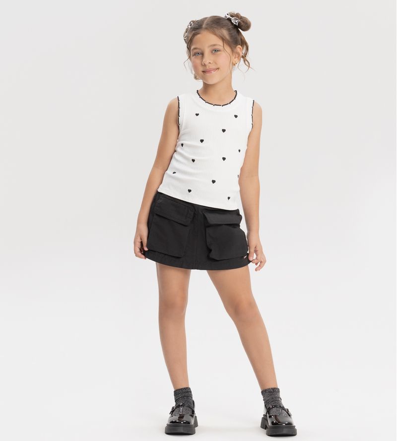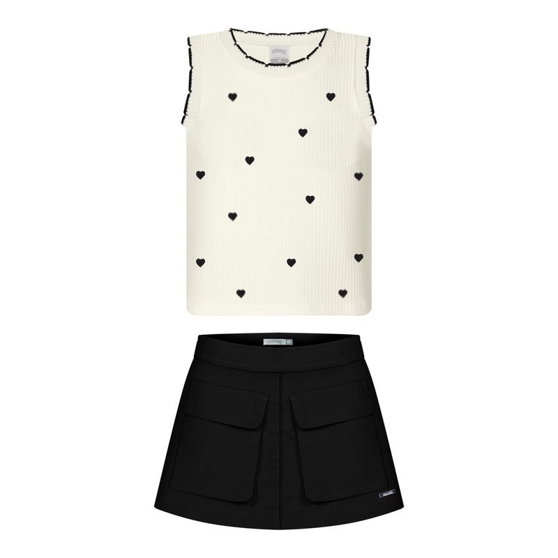 Conjunto Feminino Juvenil Alakazoo 0285 Material: MALHA CANELADO SEVILHA E TECIDO PLANO Manga: REGATA Abertura: FECHADA Bordado Shorts Saia