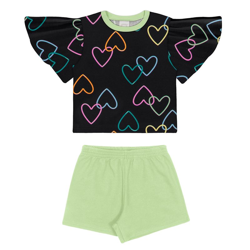 Conjunto Feminino Juvenil Alakazoo 19180 Material: BLUSA-MALHA/ SHORTS- MOLETOM Manga: MANGA CURTA Barra: TRADICIONAL Abertura: FECHADA