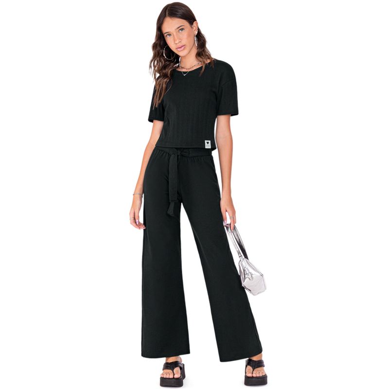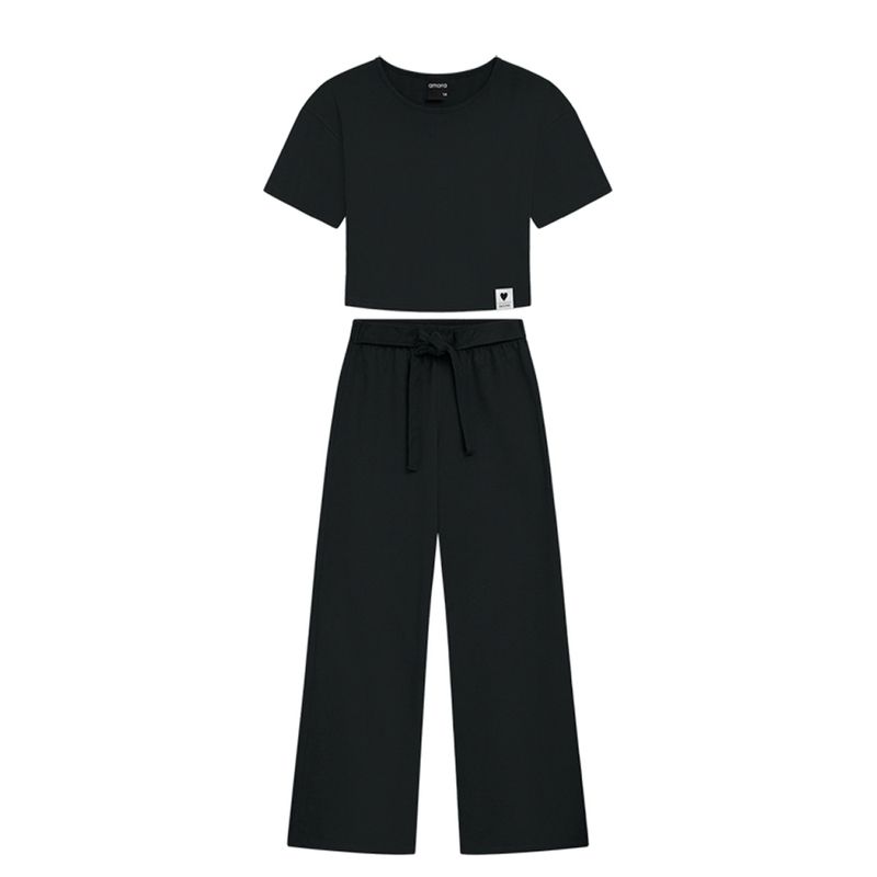 Conjunto Feminino Juvenil Amora 5000082 Material: RIBANA CANELADA E MOLETINHO S/ FELPA Manga: MANGA CURTA Barra: PANTALONA Abertura: FECHADA