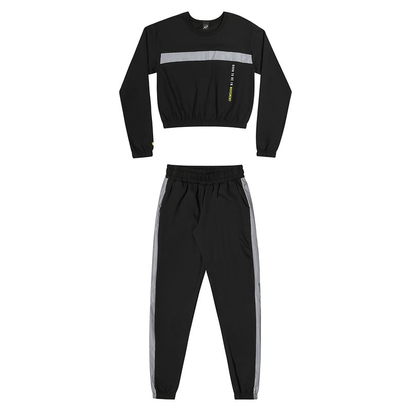 Conjunto Feminino Juvenil Beats 271428 Material: MOLETOM FLANELADO Manga: MANGA LONGA COM PUNHO Barra: BARRA COM PUNHO Abertura: FECHADA Recorte Tecido Refletivo Comprimento Cropped
