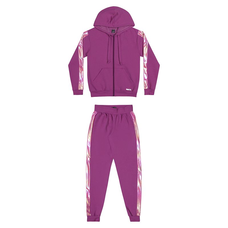 Conjunto Feminino Juvenil Beats 271431 Material: MOLETOM FLANELADO Manga: MANGA LONGA COM PUNHO Barra: BARRA COM PUNHO Abertura: ZIPER Recortes em Malha Holográfica